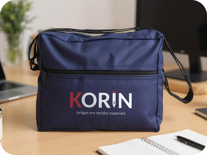 Funcional e resistente para equipes de campo e ações promocionais. Confeccionada em nylon 600, oferece espaço adequado para pastas, documentos e itens pessoais.